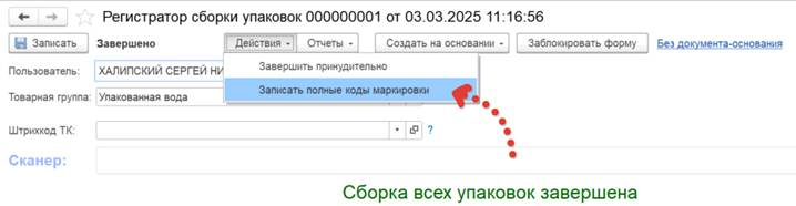 После того как задание было завершено требуется записать использованные коды маркировки в базу ЛайтМарк.