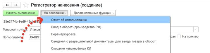 Формирование отчета об использовании (нанесении) КМ