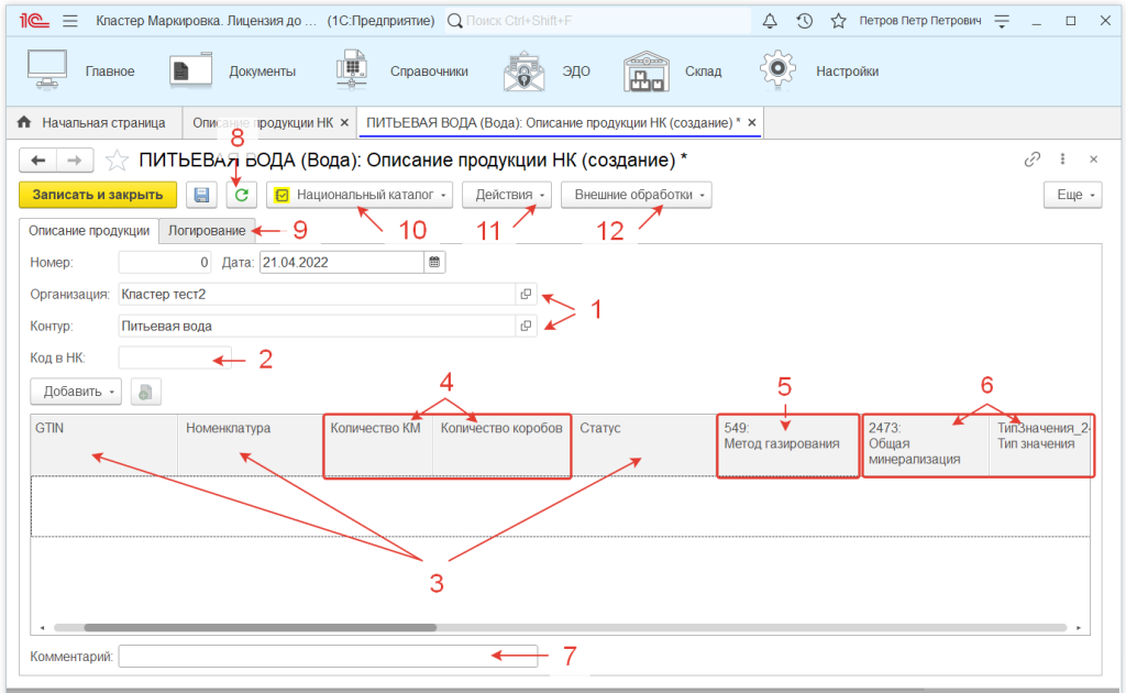 Поля GTIN, Номенклатура и Статус заполнять вручную запрещено. Это происходит автоматически: GTIN заполняется при отправке на создание технической карточки товара или по нажатию на кнопку Национальный каталог (9) --> Получить новые GTIN -- для полноценных карточек товара;