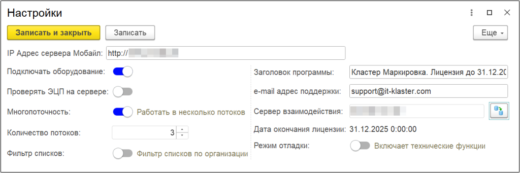 IP-адрес сервера Кластер Мобайл -- адрес для обращения к серверу обмена данными с ТСД. В зависимости от выбранной конфигурации. Подробности получения доступа к ПО для работы с маркированной продукцией на ТСД вы можете запросить по адресу manager@it-klaster.com.