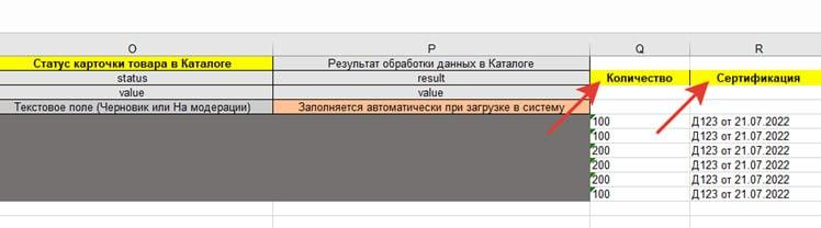 Заполняем официальный шаблон Национального каталога. Никакие поля в шапке изменять нельзя, за исключением двух полей, которые можно добавить вручную после основной таблицы: Количество и Сертификация. Эти поля добавляются строго во второй строке, сразу после поля result.