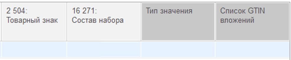 Для записи списка GTIN, входящих в набор, используется группа колонок Список GTIN вложений