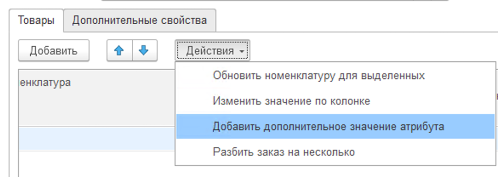 Для того чтобы указать несколько значений, выделяем одну из колонок и используем команду Добавить дополнительное значение атрибута