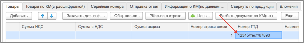 Программа проверяет номер декларации на ввоз товаров (ГТД), указанной для строки товара в табличной части документа.