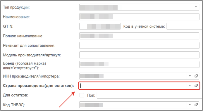 Если номер ГТД все же не найден, код страны берется из карточки товара. В случае, если страна происхождения не заполнена, товар считается отечественного производства.
