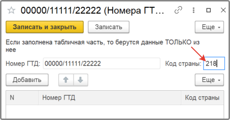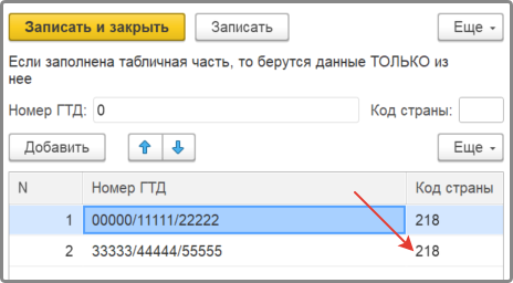 В случае, когда для одной строки товара указано несколько номеров ГТД, код страны берется из последней заполненной строки, игнорируя значения, указанные в верхней части справочника.