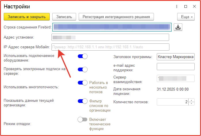На этом настройка работы Кластер Мобайл с конфигурацией Кластер Маркировка завершена.