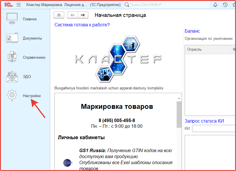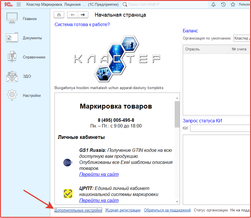 Подключение к программе Кластер Маркировка