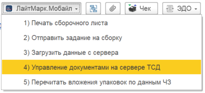 Посмотреть или сменить текущий статус локального документа можно через панель управления документами на сервере ТСД.