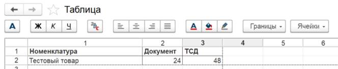 3) При загрузке документа с сервера появляется табличный документ с расхождениями