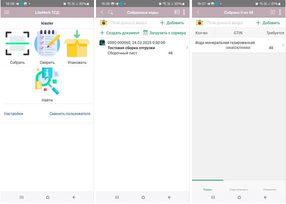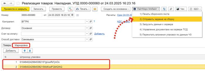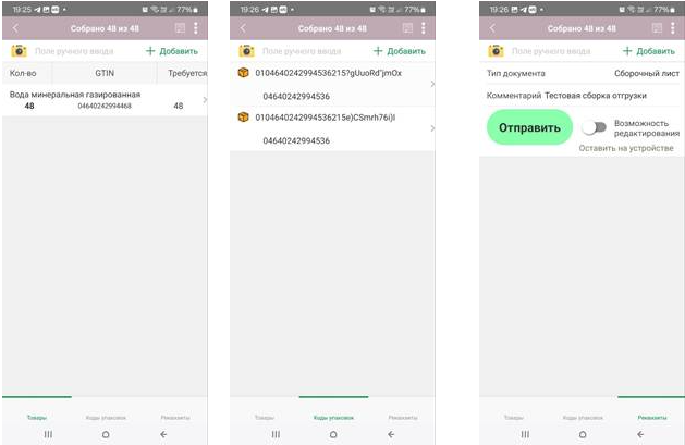 4. Сборка кодов маркировки в задание на мобильном устройстве