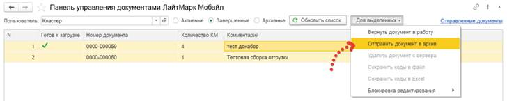 Для того чтобы список завершенных документов не увеличивался, можно отправлять старые документы в архив. При этом они будут оставаться на сервере. Удалить документ можно только в статусе В архиве.
