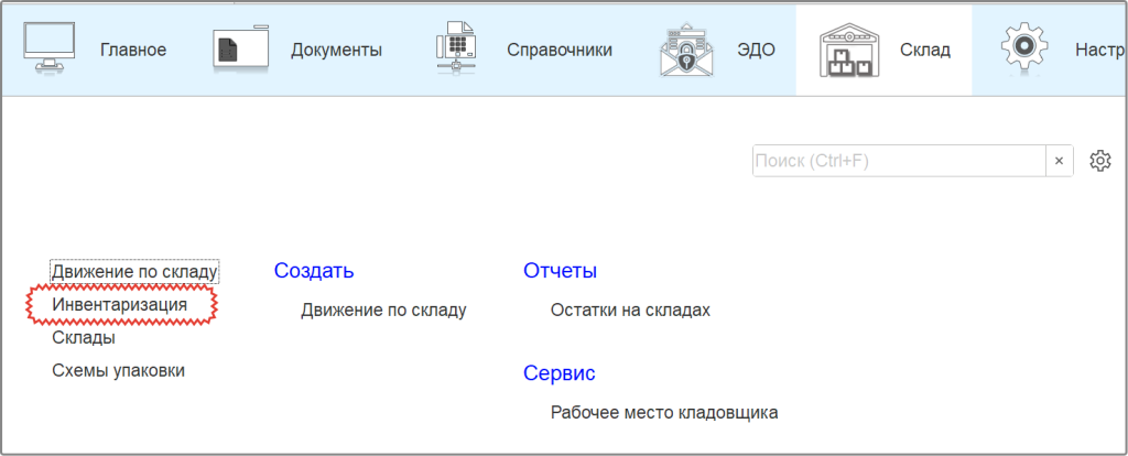 Перед проведением инвентаризации необходимо проверить, что загружена вся номенклатура из Национального каталога. Используйте инструкцию Начальное заполнение справочников.