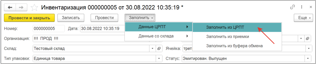После заполнения документа нажмите кнопки Заполнить -- Данные ЦРПТ -- Заполнить из ЦРПТ.