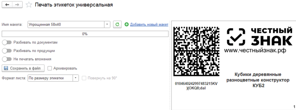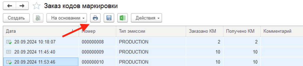 Печать кодов маркировки из документов заказов