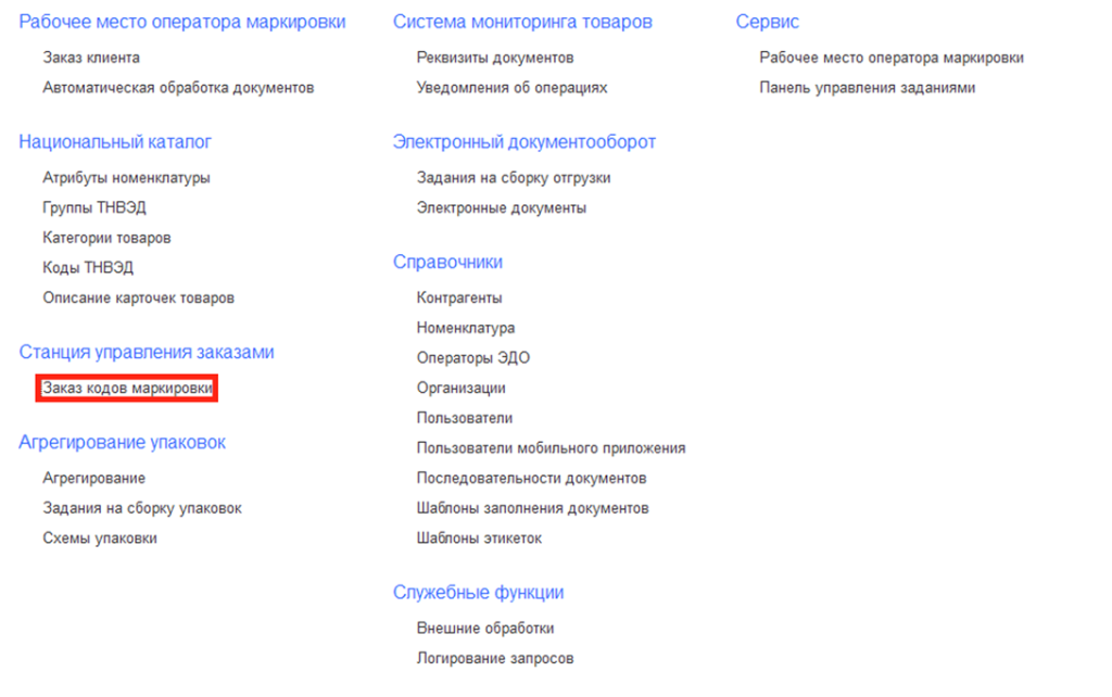 Заказ кодов маркировки в Станции Управления Заказами
