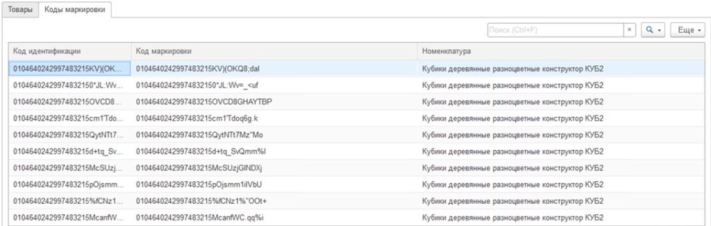 - Получить выделенные – получить коды маркировки
