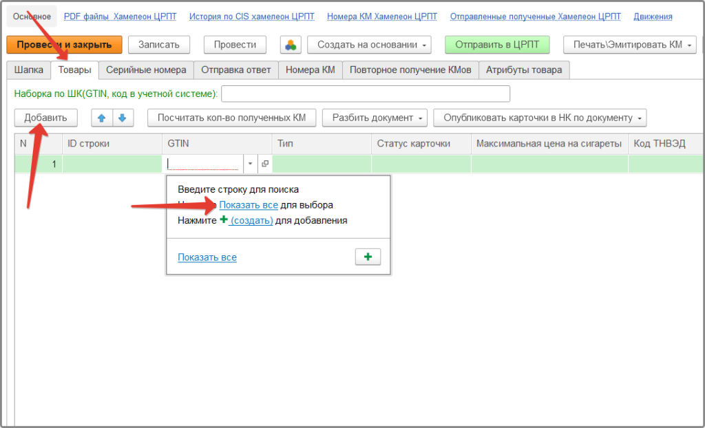 Перейдите на вкладку «Товары», нажмите «Добавить» ⇒ «Показать все»
