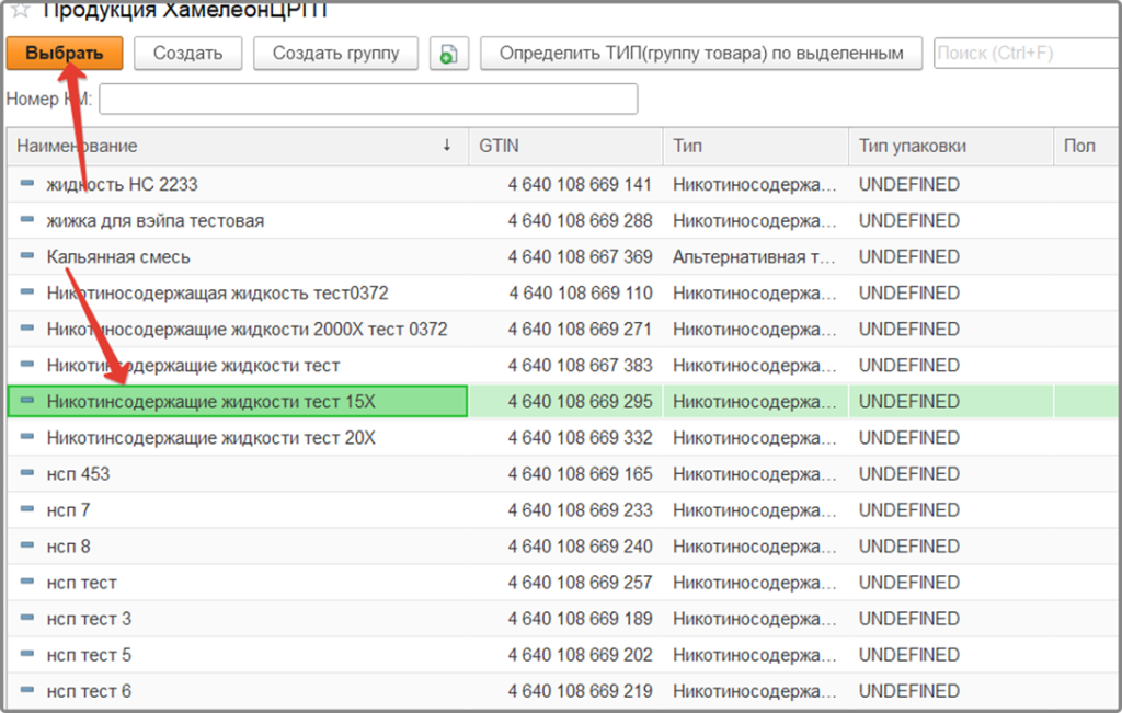 В списке продукции выделите продукцию и нажмите «Выбрать»